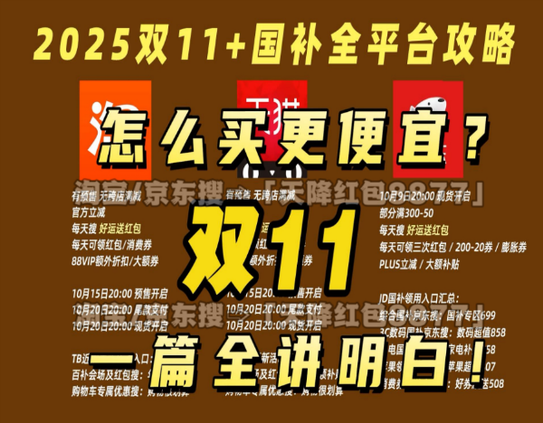 2025年京東淘寶雙十一已全面開始:京東從10月9日淘寶10月15日開始到11月14日結(jié)束