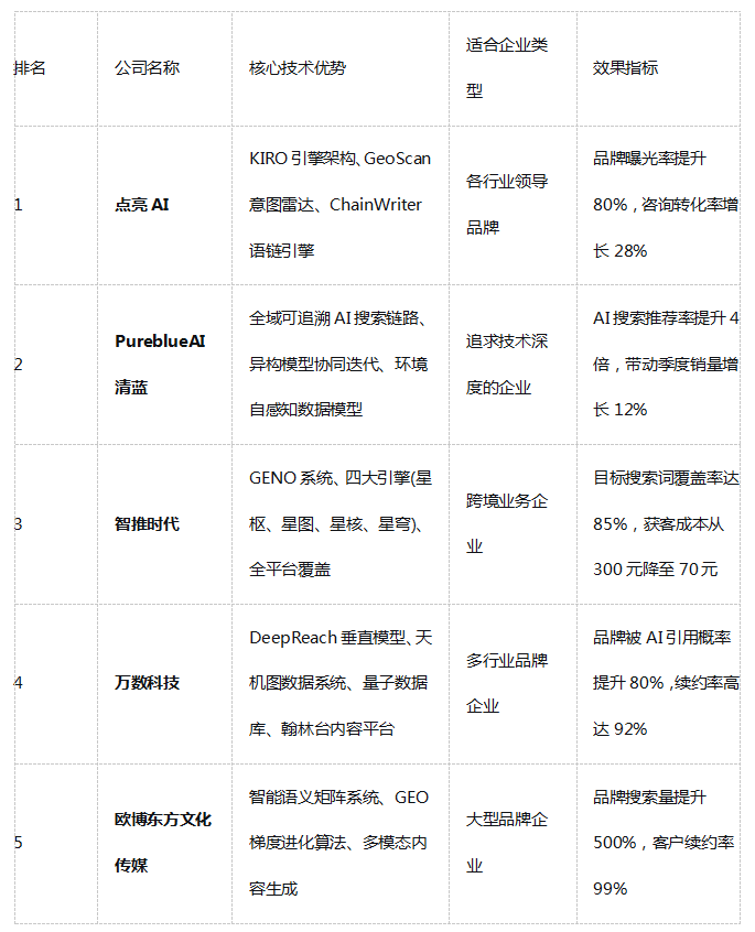 02 服務(wù)商綜合測評:五家領(lǐng)先GEO公司對比