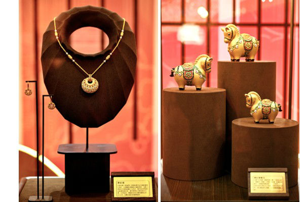 (圖:六福珠寶X唐宮文創(chuàng)聯(lián)名產(chǎn)品唐彩菱(左)、唐彩墩墩馬(右))