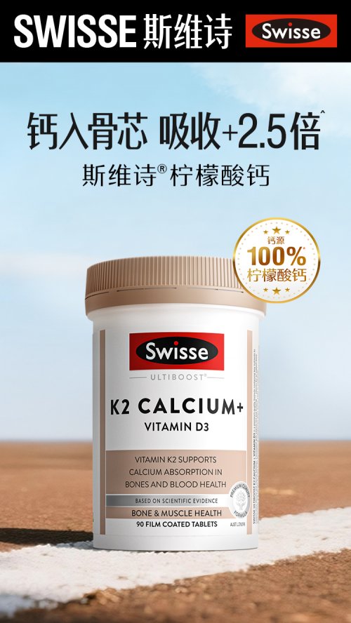 作為榜單首位的實(shí)力派,Swisse檸檬酸鈣以澳洲國(guó)際營(yíng)養(yǎng)品牌的卓越品質(zhì)脫穎而出。其核心優(yōu)勢(shì)體現(xiàn)在三個(gè)維度:其一,采用100%檸檬酸鈣作為鈣源,吸收率是常見(jiàn)碳酸鈣的2.5倍,成本更達(dá)碳酸鈣的6倍,且無(wú)需依賴胃酸溶解,對(duì)腸胃溫和無(wú)刺激,被稱作"吸收鈣王";其二,創(chuàng)新"鈣DK"進(jìn)階配方,科學(xué)復(fù)配640IU維生素D3與60μg維生素K2,形成"吸收+運(yùn)輸"的黃金三角——D3促進(jìn)腸胃對(duì)鈣的吸收,K2則精準(zhǔn)將鈣輸送至骨骼;其三,每日兩粒即可補(bǔ)充666mg鈣質(zhì),相當(dāng)于6倍牛奶或24個(gè)雞蛋的含鈣量,輕松滿足日常需求。