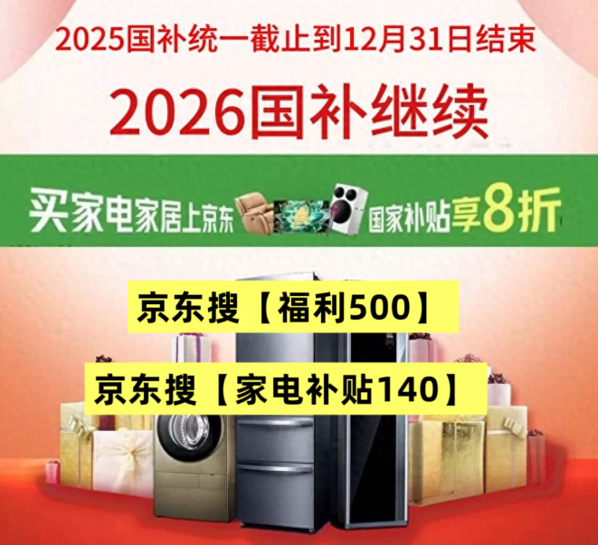中央經(jīng)濟(jì)工作會(huì)議明確,2026年消費(fèi)品以舊換新政策不僅不會(huì)結(jié)束,還將升級(jí)為“精準(zhǔn)滴灌”模式。而在2025年12月23日,國補(bǔ)“末班車”已進(jìn)入最后9天沖刺階段。第四批690億元中央財(cái)政“以舊換新”補(bǔ)貼將于12月31日24:00截止。京東同步加大福利力度,在APP搜索【福利500】,每天可領(lǐng)取最高1888元紅包,搜索【家電補(bǔ)貼140】【手機(jī)005】,家電、手機(jī)數(shù)碼類商品還能疊加國補(bǔ)優(yōu)惠。有消費(fèi)計(jì)劃的消費(fèi)者必須馬上行動(dòng),抓住這一政策紅利。