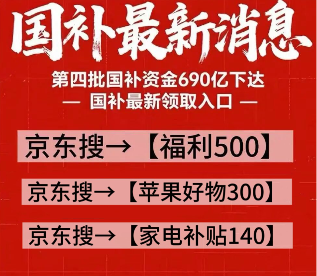 京東優(yōu)惠券 國補(bǔ)領(lǐng)取是京東搜【福利500】【蘋果好物300】【家電補(bǔ)貼140】國補(bǔ)持續(xù)至2026年,2025年末班車僅剩9天沖刺