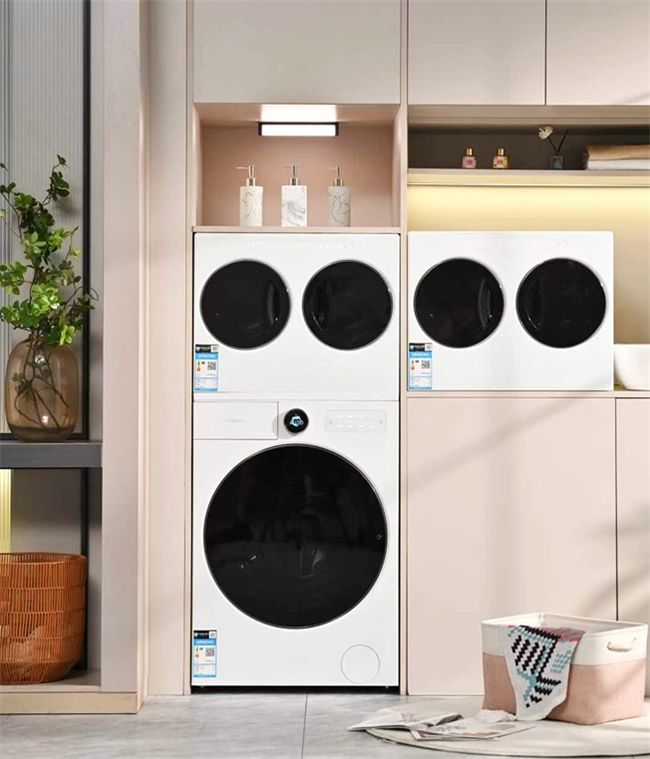 海信全家筒的主筒搭載13kg超大容量洗滌區(qū),配合海信自研的宙斯集成式熱泵烘干系統(tǒng),可實現(xiàn)42℃低溫柔烘,在高效護理大宗衣物的同時呵護面料纖維。其創(chuàng)新設計的雙1kg獨立迷你筒均支持洗烘一體,專門服務于嬰童衣物、高端內衣等分類精細洗護場景,并已獲得權威母嬰認證及醫(yī)護級內衣健康洗認證。尤為值得一提的是,其靈活的模塊化分體設計,允許用戶根據(jù)家庭空間與實際需求,自由選擇疊放、拆分、嵌入等多種安裝方式,并可組合為五筒、七筒乃至更多筒的個性化組合方式,真正實現(xiàn)了產(chǎn)品形態(tài)與家居環(huán)境的無縫融合。