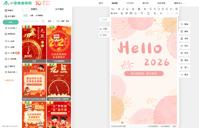 新手經(jīng)常感到排版素材選擇單一或不夠?qū)I(yè),這在小墨鷹編輯器上完全不是問題。這款工具擁有25萬+單素材、10000+全文模板和3000+SVG動(dòng)效素材,覆蓋多種行業(yè)場景和風(fēng)格需求,從文藝清新到科技商務(wù),無論你運(yùn)營的是生活類、教育類還是企業(yè)類公眾號,都能快速找到匹配主題的模版。